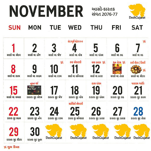 Gujarati Calendar 2020 Vikram Samvat Gujarati Year 2076 Deshgujarat