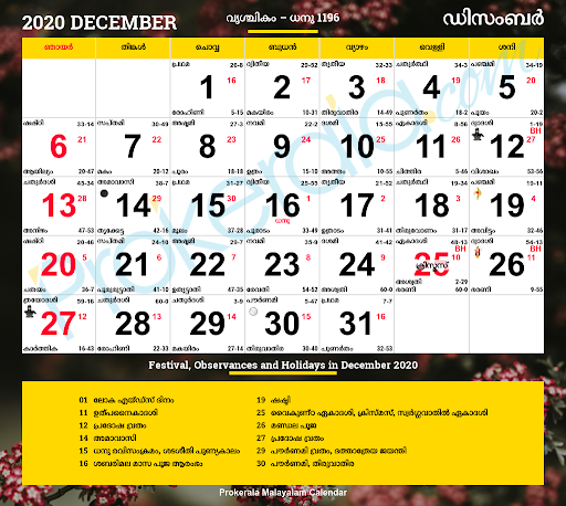 Until a few decades ago kollavarsham and malayalam months were popular among native people of kerala. Dhanu 1 2021 falls on december 16. For festivals and holidays during current year go to malayalam calendar 2020. Get malayalam calendar 2020 android app.